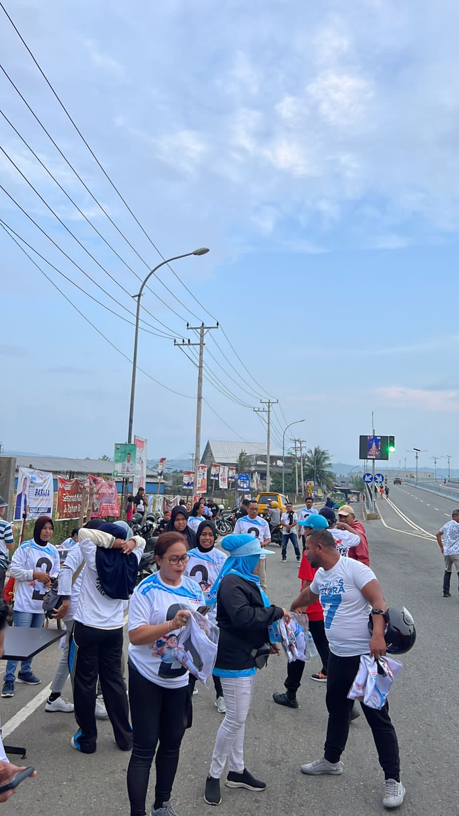 Ambon, Sirimaupos.com – Dengan membentuk barisan sepanjang depan Maluku City Mall (MCM) hingga Jembatan Merah Putih (JMP) ratusan relawan Prabowo-Gibran bagi-bagi susu dan makanan kepada warga Ambon, Sabtu (30/12/2023).